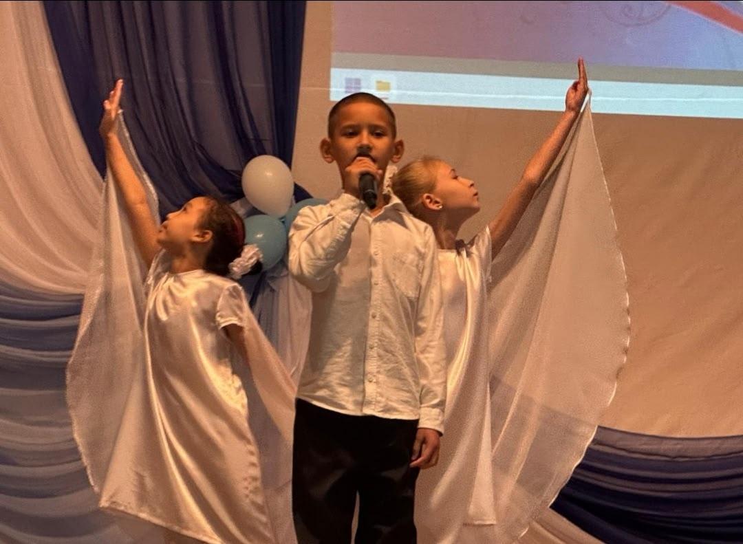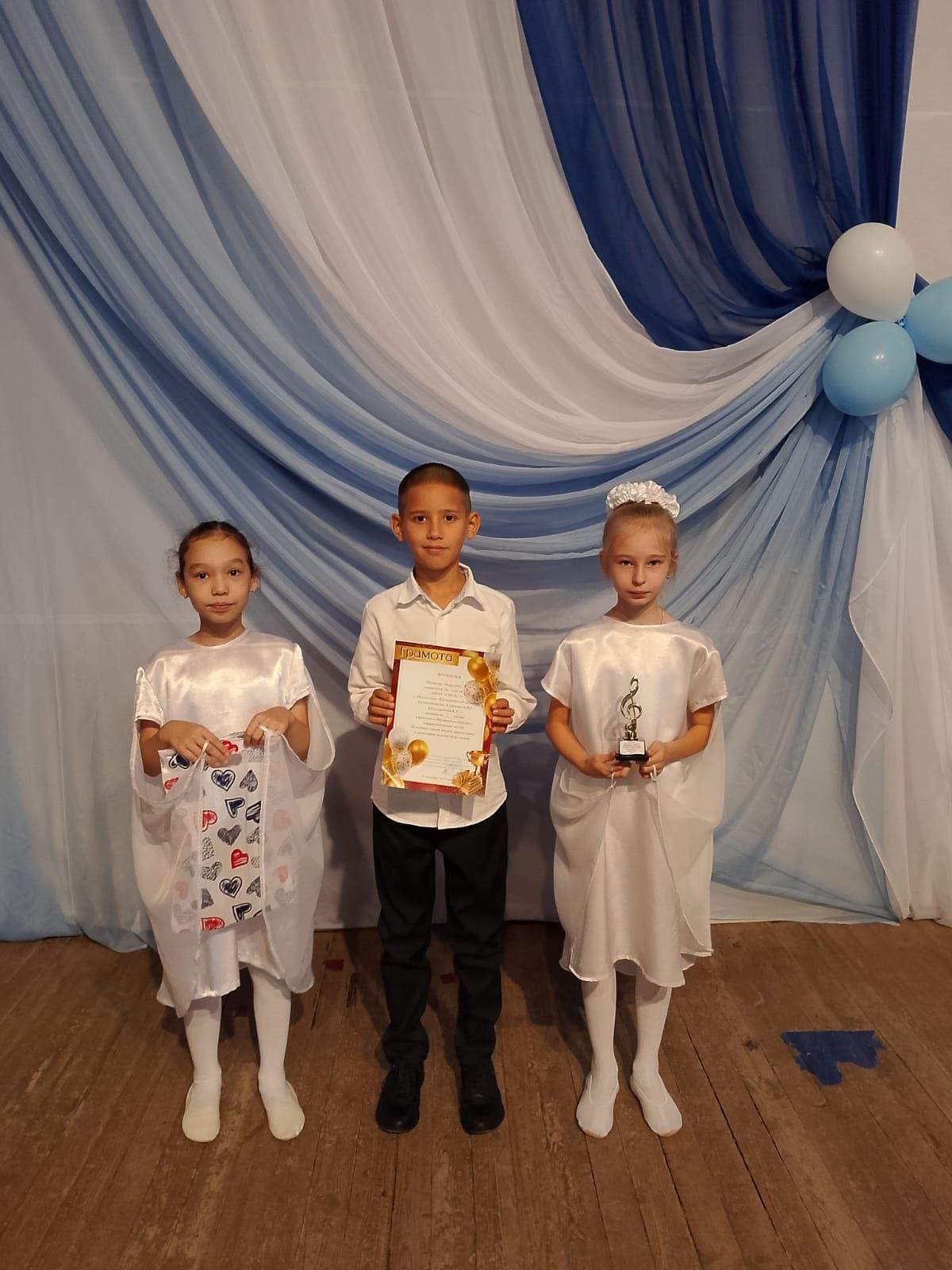 В конкурсе приняли участие наши «звёздочки» из 3а класса. Учащиеся Искаков Эмирхан, Гогорева Сабина и Золотарева Евгения, под чутким руководством своих наставников – учителя музыки Аляпышевой И.Г. и учителя начальных классов Кузулгуртовой К.Г. представили на суд жюри и зрителей композицию «Я ангелом летал».