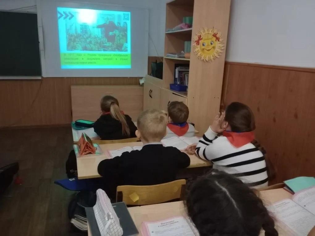 Для учеников 4-го "в" класса провели специальную беседу, чтобы они глубже поняли это событие. Дети узнали о ключевых моментах революции, её влиянии на общество и экономику, а также о том, как она изменила Россию.