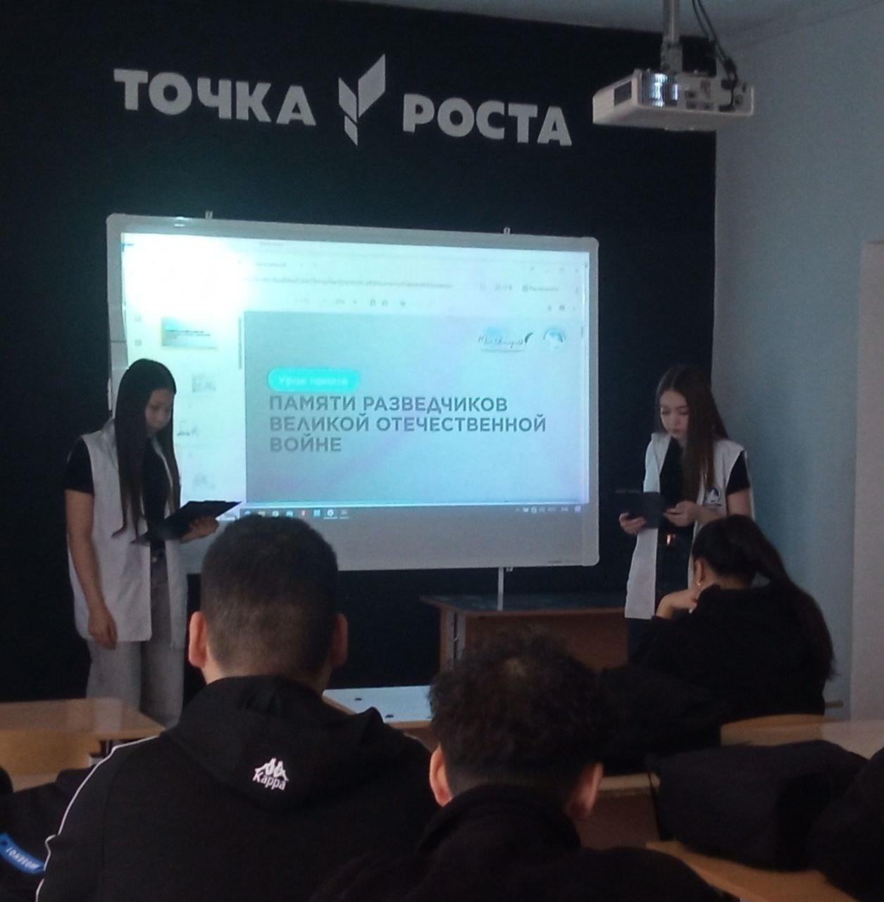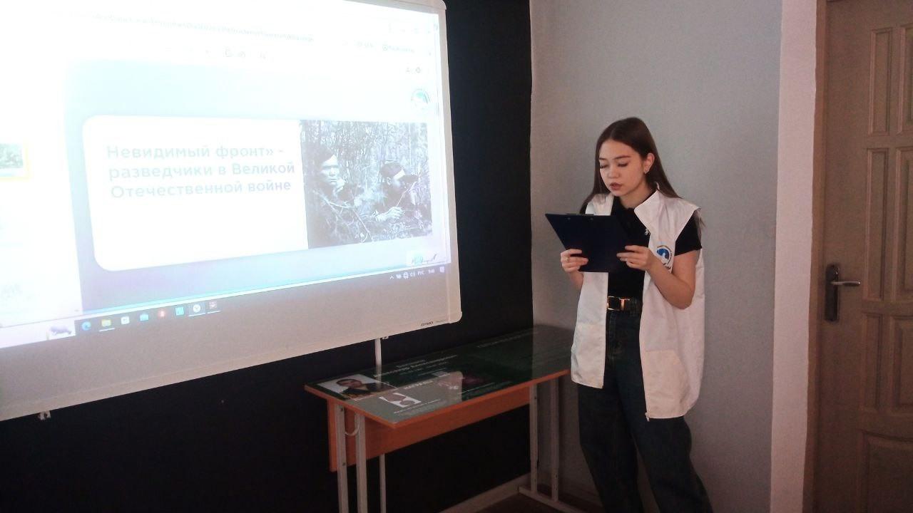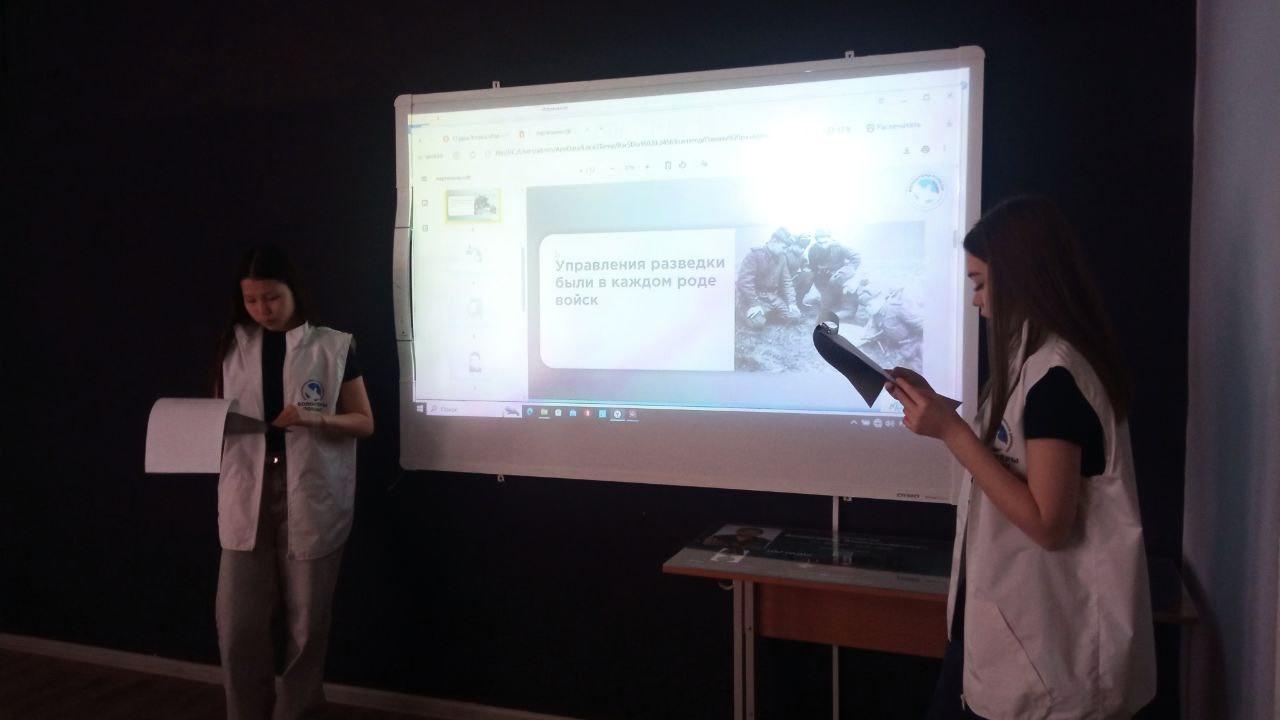 Ребята из школьного отряда волонтёров Победы провели для своих одноклассников урок Памяти посвящённый разведчикам Великой Отечественной войны. Рассказали о роли разведки, разведчиках во время военных действий, когда была создана и чем занималась военная контрразведка СМЕРШ.